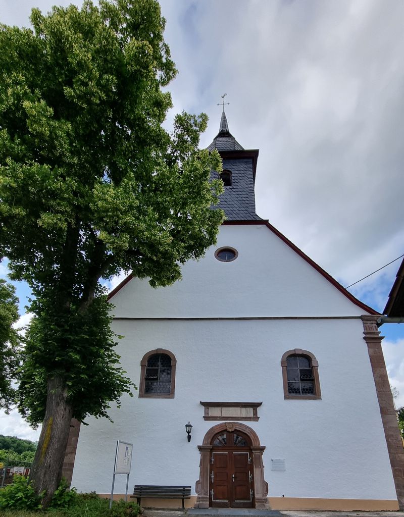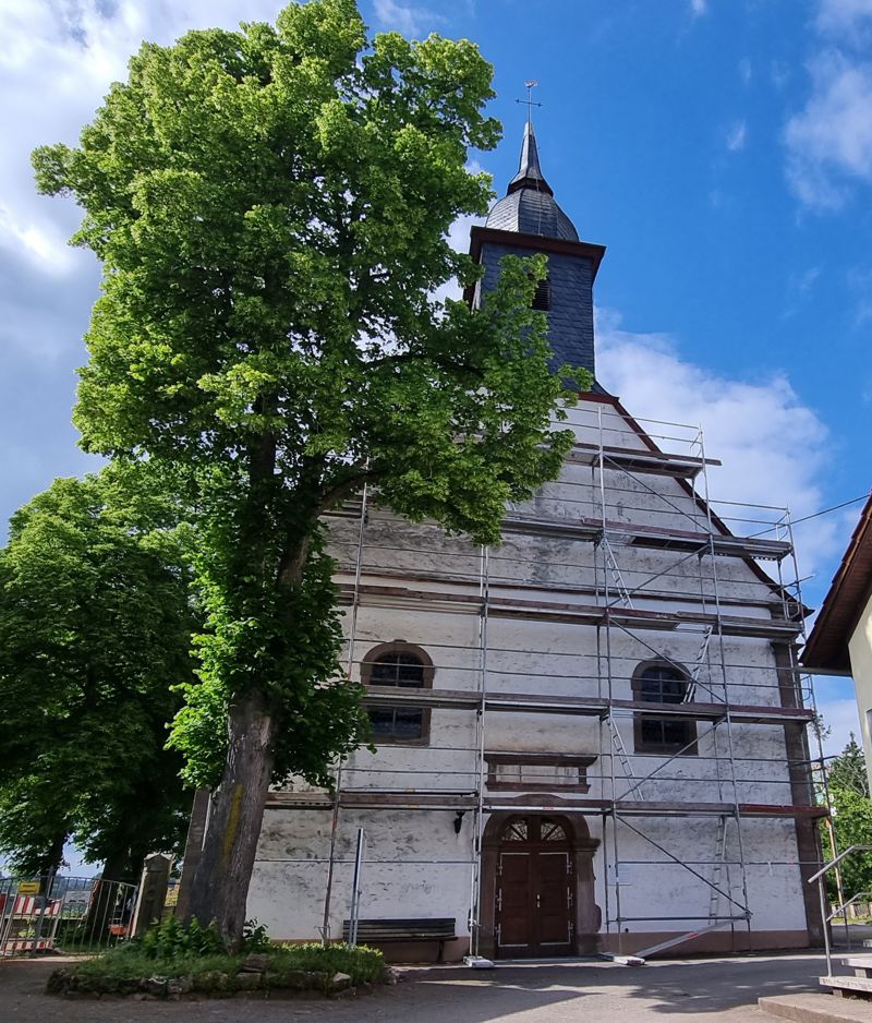 Die Südfassade der Historischen Barockkirche Gimsbach wurde neu gestrichen.