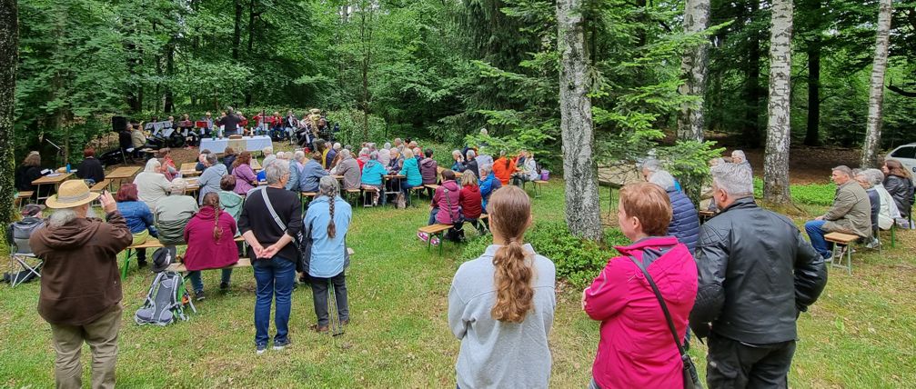Rund 70 Besucherinnen und Besucher fanden sich bei herrlichem Frühlingswetter an der alten Tanzbühne in der Nähe des Potzbergturmes ein.