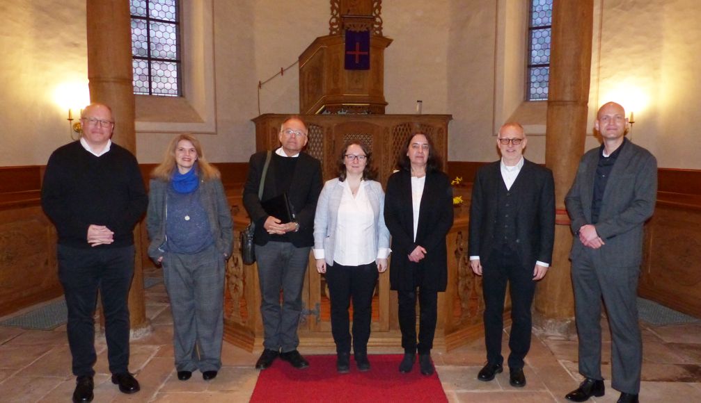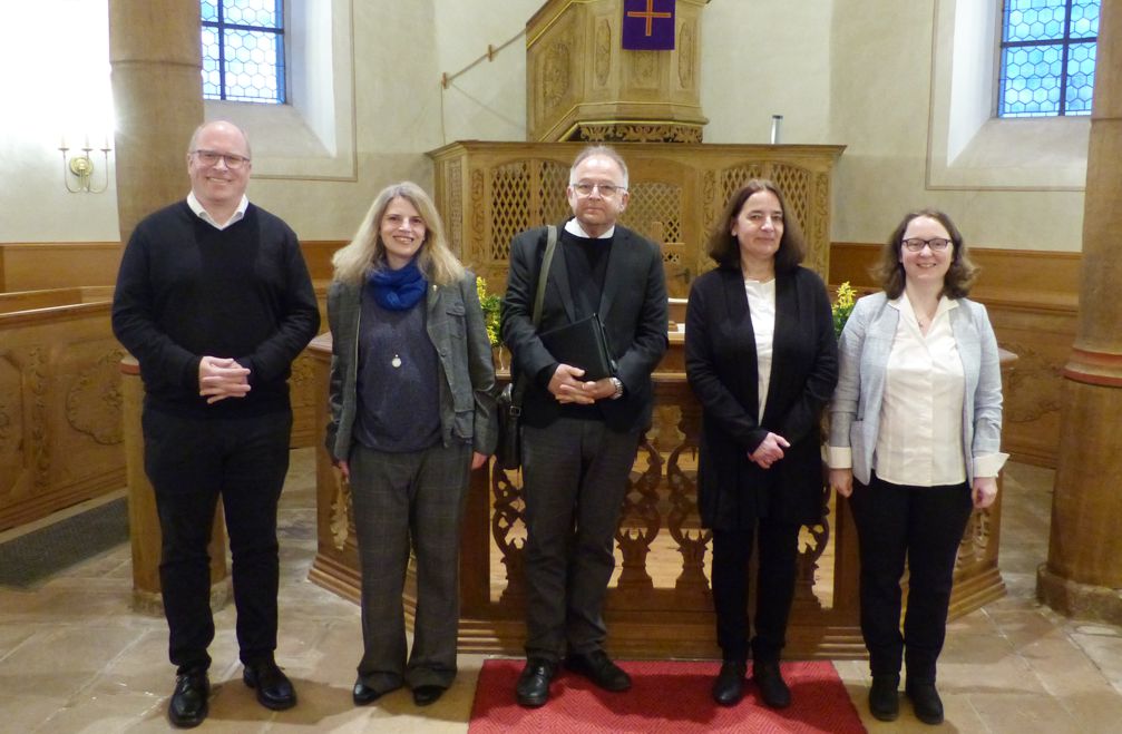 v.l.n.r. : Pfarrer Christoph Bröcker, Pfarrerin Simone Stetzenbach, Pfarrer Johannes Hülser, Pfarrerin Katharina Küttner, Pfarrerin Regine Großmann, Oberkirchenrat Dr. Claus Müller, Dekan Lars Stetzenbach