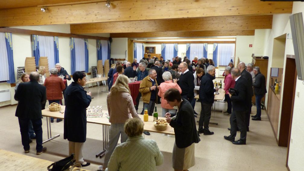 Im Anschluss an den Festgottesdienst gab es noch einen Stehempfang im Dorfgemeinschaftshaus der Gelegenheit zum Gedankenaustausch bot. |