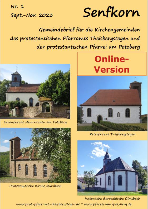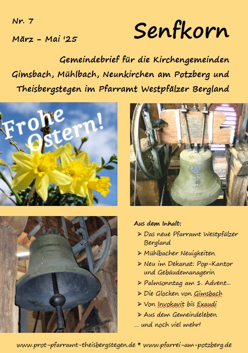 Die Zuständigkeiten innerhalb der Dienstgemeinschaft entnehmen Sie bitte dem letzten Potzbergboten Nr. 47. Die Onlineausgabe kann über die Webseite der Pfarrei am Potzberg (https://www.pfarrei-am-potzberg.de) und die Seite der Historischen Barockkirche Gimsbach (www.historische-barockkirche.de) eingesehen werden.