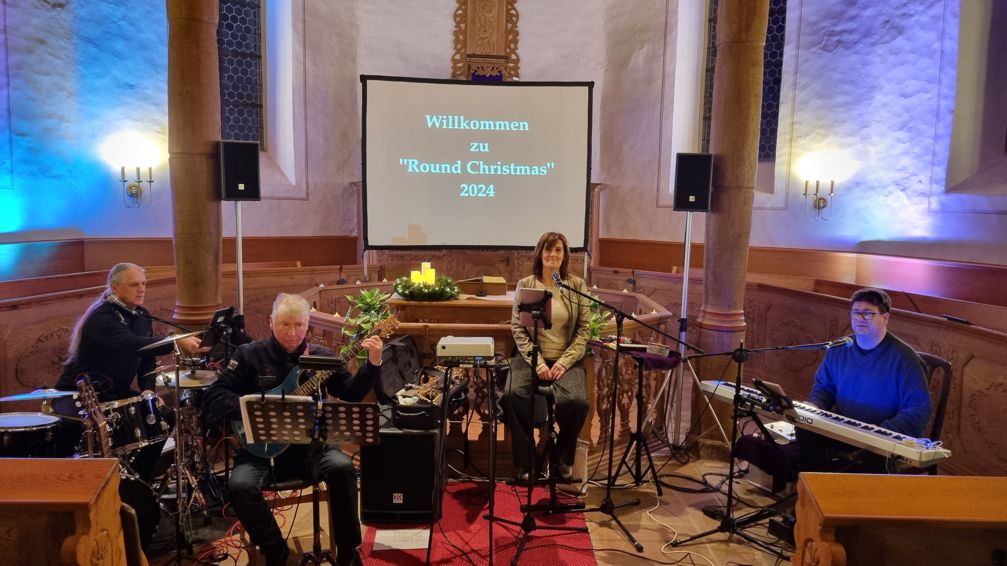 Ca. 70 BesucherInnen kamen in einen besonderen Genuss mit vielen deutschen, einigen englischen und sogar spanischen Weihnachtsliedern. Maria Hemm, Norbert Müller, Thomas Geib und Michael Weickenmeier boten damit den BesucherInnen einen besonderen Abend.