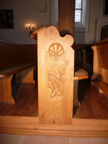 Die Kirche hat etwa 260 Sitzplätze und auch die Wangen der Bänke tragen reiches Schnitzwerk von Früchten und Blumen aus der Erbauungszeit.