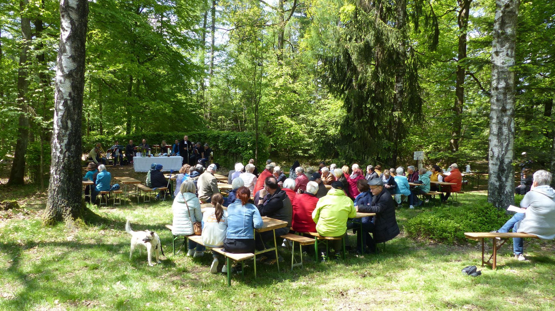 Rund 70 Besucherinnen und Besucher fanden sich bei herrlichem Frühlingswetter an der alten Tanzbühne in der Nähe des Potzbergturmes ein.