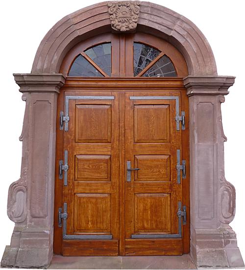 Besonders aufwendig ist das Südportal gestaltet: auf zwei Pilastern mit seitlichen Volluten ruht auf einfacher Kapitellen eine profilierte Bogenrahmung, am Scheitelstein Wolken und das Auge Gottes im Strahlenkranz.