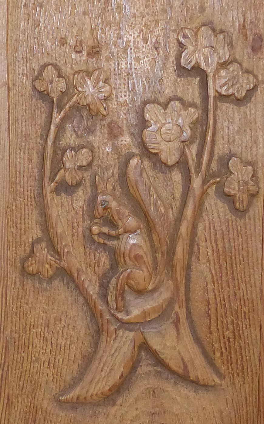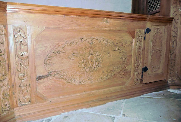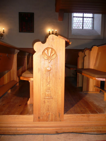 Die Kirche hat etwa 260 Sitzplätze und auch die Wangen der Bänke tragen reiches Schnitzwerk von Früchten und Blumen aus der Erbauungszeit.
