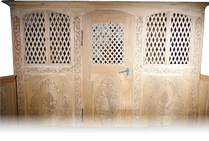 Der dreiteilige Pfarrstuhl, also der Aufenthaltsort des Geistlichen vor der Predigt, besitzt mit Laubwerk verzierte Türpfosten und Rahmen. Seine Front weist im oberen Teil Gitterwerk auf, darunter drei eingetiefte Felder, wobei rechts und links je ein erhabenes Bildfeld Weintrauben und Weinlaub zeigt, die aus einer bauchigen Kanne wachsen. Das mittlere Feld mit der Tür erhält eine Darstellung vom Traum Jakobs von der Himmelleiter, wobei vom Auge Gottes zwei Engel auf der Leiter steigen.